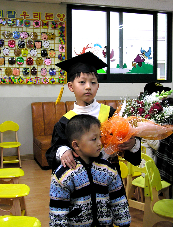 졸업 축하해요~~~~ emoticon_025 넘 미남들이네요^^ㅋ 이제 초등학생되는건가요?? 작은아이는 몇살인가요?? 자꾸 궁금한것이....ㅎ